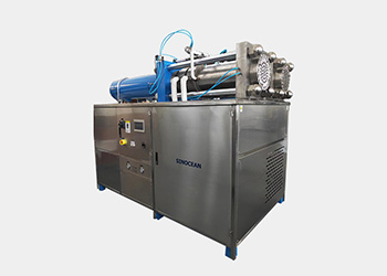 The Dry Ice Pelletizer offers automatic production capability of up to 400kg per hour of consistent, high-density dry ice pellets using Liquid CO₂ and electrical power. Compact and reliable dry ice machine puts dry ice production in your hands. The dry ice pelletizer is driven by a powerful hydraulic unit featuring instant push button start. Fully automatic control of oil temperature and dry ice snowing process guarantees continuous dry ice production without any supervision right from push button start.